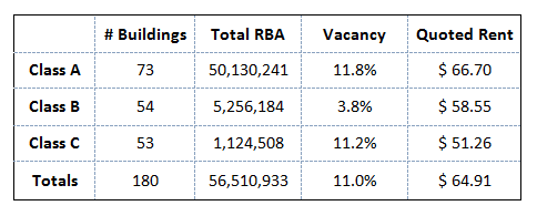 A more detailed analysis of the Grand Central Station sub-market is found in the table below. (Note: In the table, RBA = Rentable Building Area. That is the total square footage of a building that can be occupied by, or assigned to a tenant for the purpose of determining a tenant’s rental obligation.)