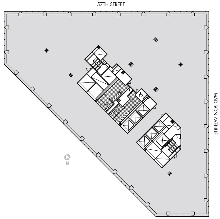 Constructed in 2009, 510 Madison Avenue (S/W/C 53rd Street) is the Plaza District’s newest elite office tower. Contained within its gleaming 30 floors are a 6,500 RSF garden terrace, private health club with lap pool and luxury retail stores. Private floors measure 11,500 RSF to 16,500 RSF. Offices as small as 2,500 RSF are sometimes offered. Rents are from $135 PSF and include an elegant custom office designed by Gensler.