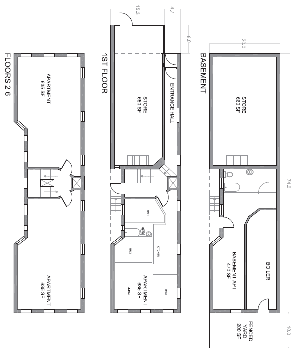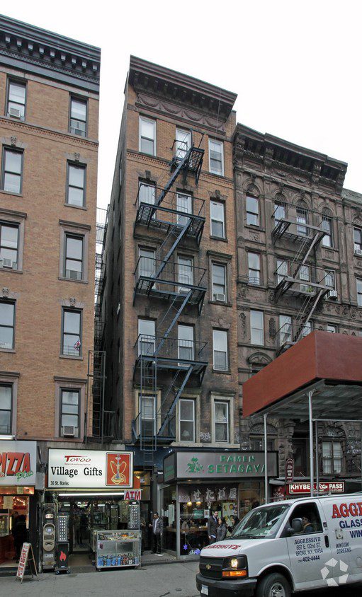 34 1/2 St. Marks Place is more than 100 years old and classified by NYC as an Old Law Tenement. This 1879 law required that every inhabitable room have a window opening to plain air, a requirement that was met by including air shafts between adjacent buildings. Floor plans are found on the adjacent illustration. The building’s apartments are 100% occupied with approximately half rented by students enrolled at nearby New York University and Cooper Union.